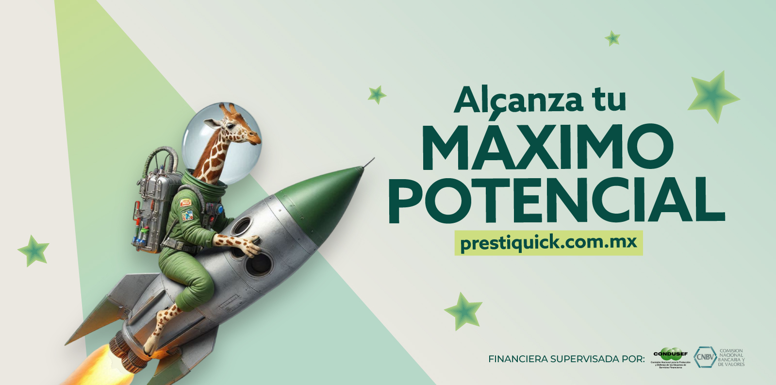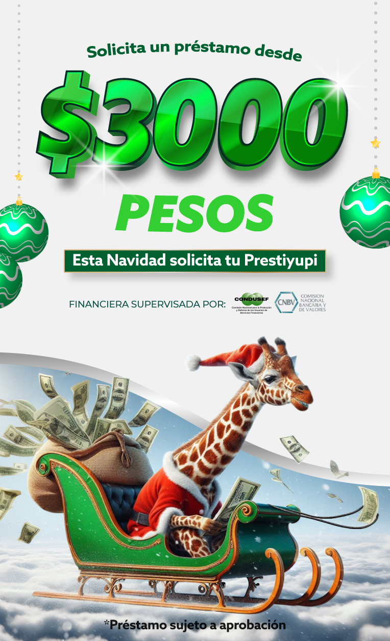 PRESTIYUPI: CAT PROMEDIO: 312.7% Sin IVA. Para fines informativos y de comparación. Tasa de Interés Anual Fija Máxima: 108% Plazo mínimo 12 quincenas. Plazo Máximo 24 quincenas.